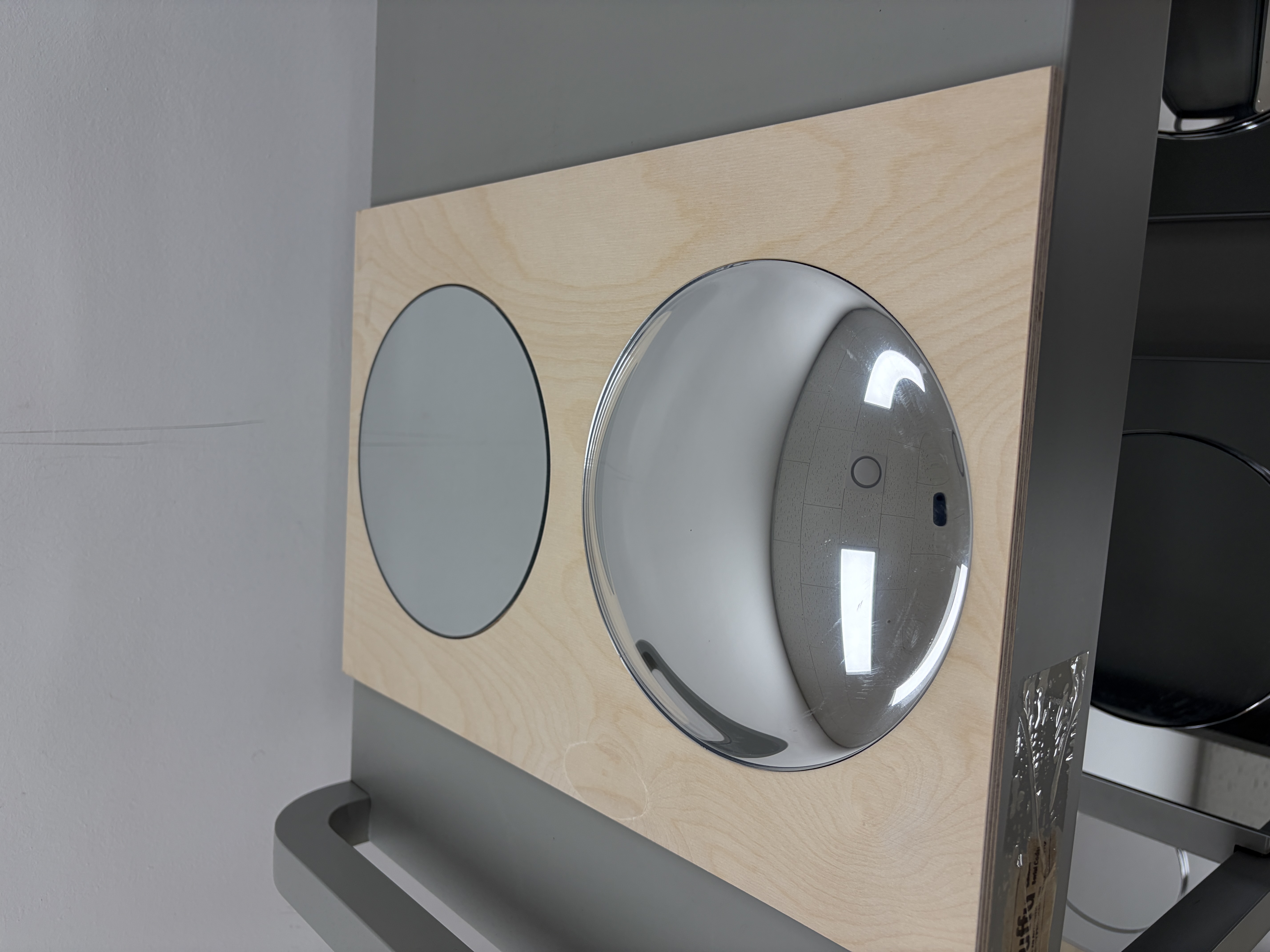 프레임 패치 자국으로 인해 불량, 평면 원형거울 직선기스, 볼록거울 중앙 회색 반점