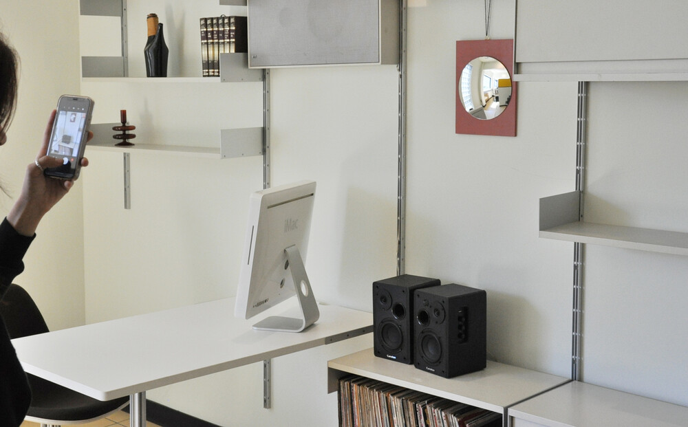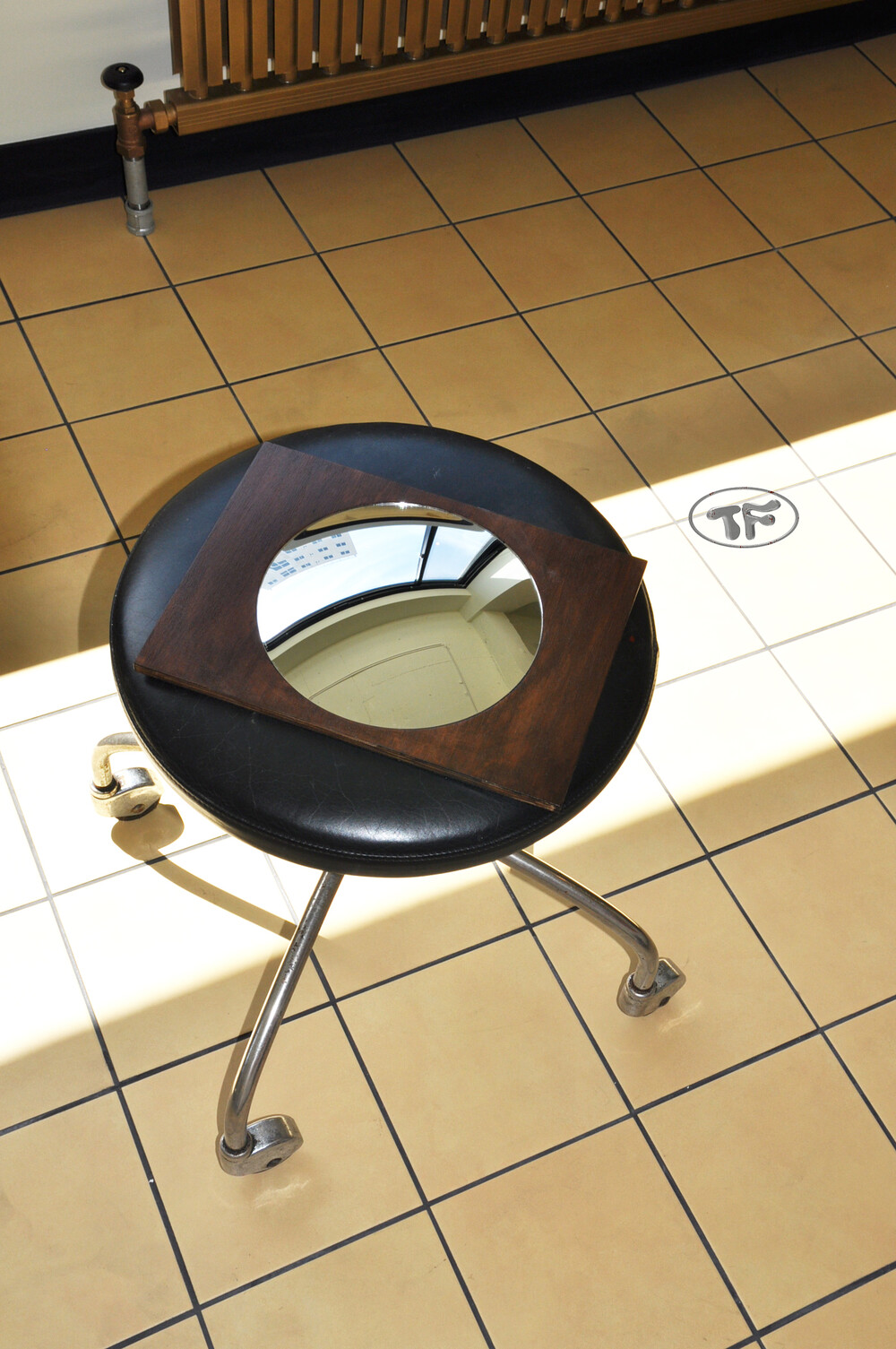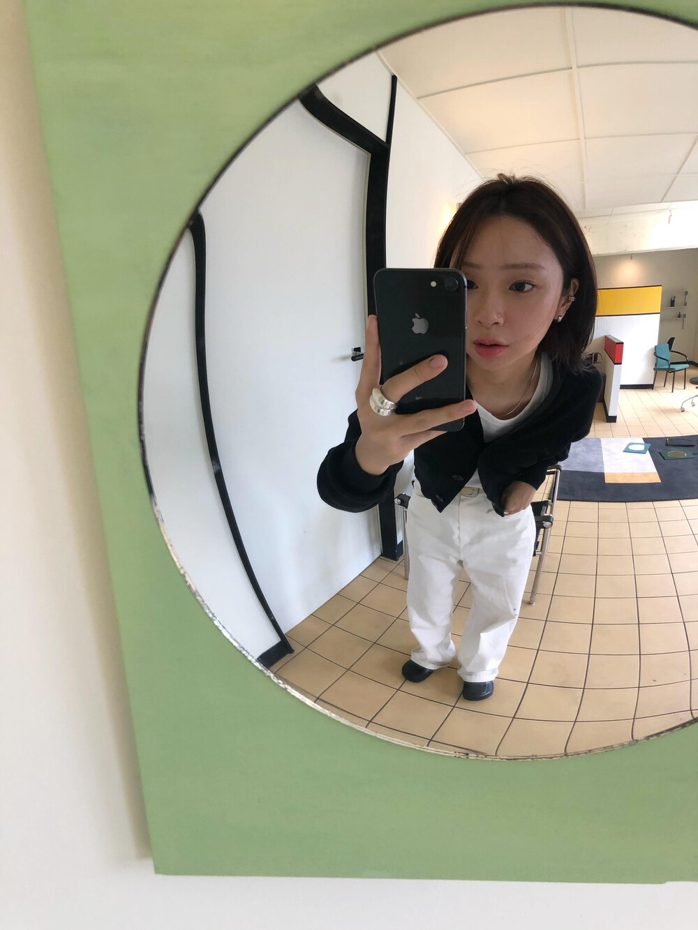 평면 거울과 볼록 거울을 혼합하여 재밌는 효과를 표현한 거울입니다.